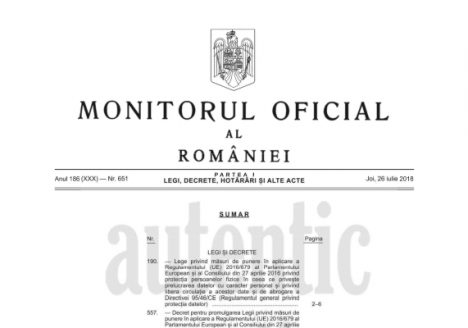 Masuri de aplicare GDPR publicate in Monitorul Oficial